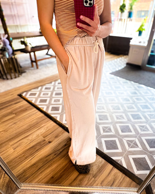 Fold Over Waist Wide Leg Sweatpant