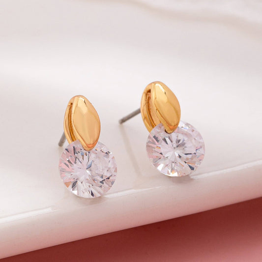 Crystal On Gold Post Stud Earrings